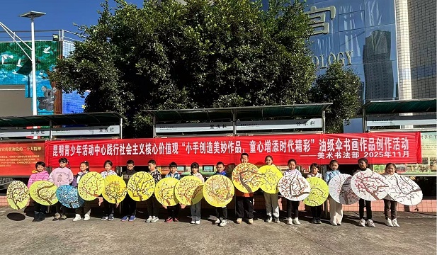 昆明青少年活动中心油纸伞书画创作活动:小手绘伞面 童心传文化践价值观